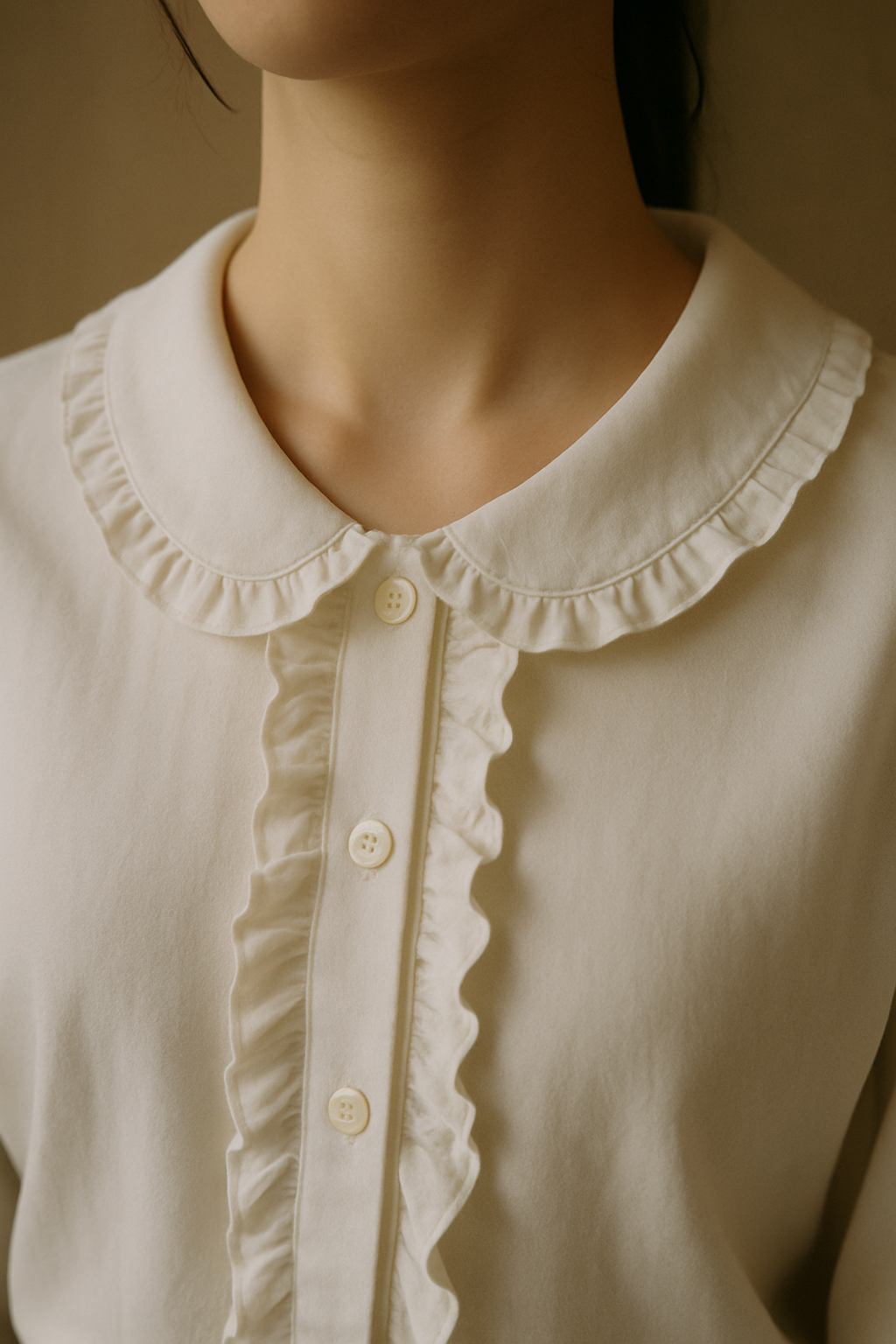 둥근 칼라와 퍼프 소매.