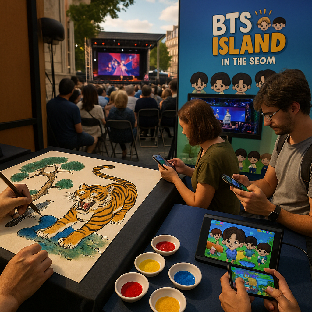 한편에선 민화 작가가 천천히 붓을 들었다. 오방색이 백지 위에 번졌고, 까치와 호랑이가 선명하게 태어났다. 사람들은 그 곡선 속에서 낯설지만 따뜻한 생명을 발견했고, 웃음을 지으며 감탄했다. 그 옆에선 K-게임 부스가 열렸고, 픽셀 아트와 아이돌 목소리가 섞인 화면이 관객을 끌어당겼다. 사람들은 자연스럽게 스마트폰을 꺼냈고, 낯선 문화는 손끝에서 익숙한 재미로 바뀌었다. 한국은 그날, 말 대신 놀이로 다가갔고, 세계는 그 장난스러운 손짓에 주저 없이 반응했다.