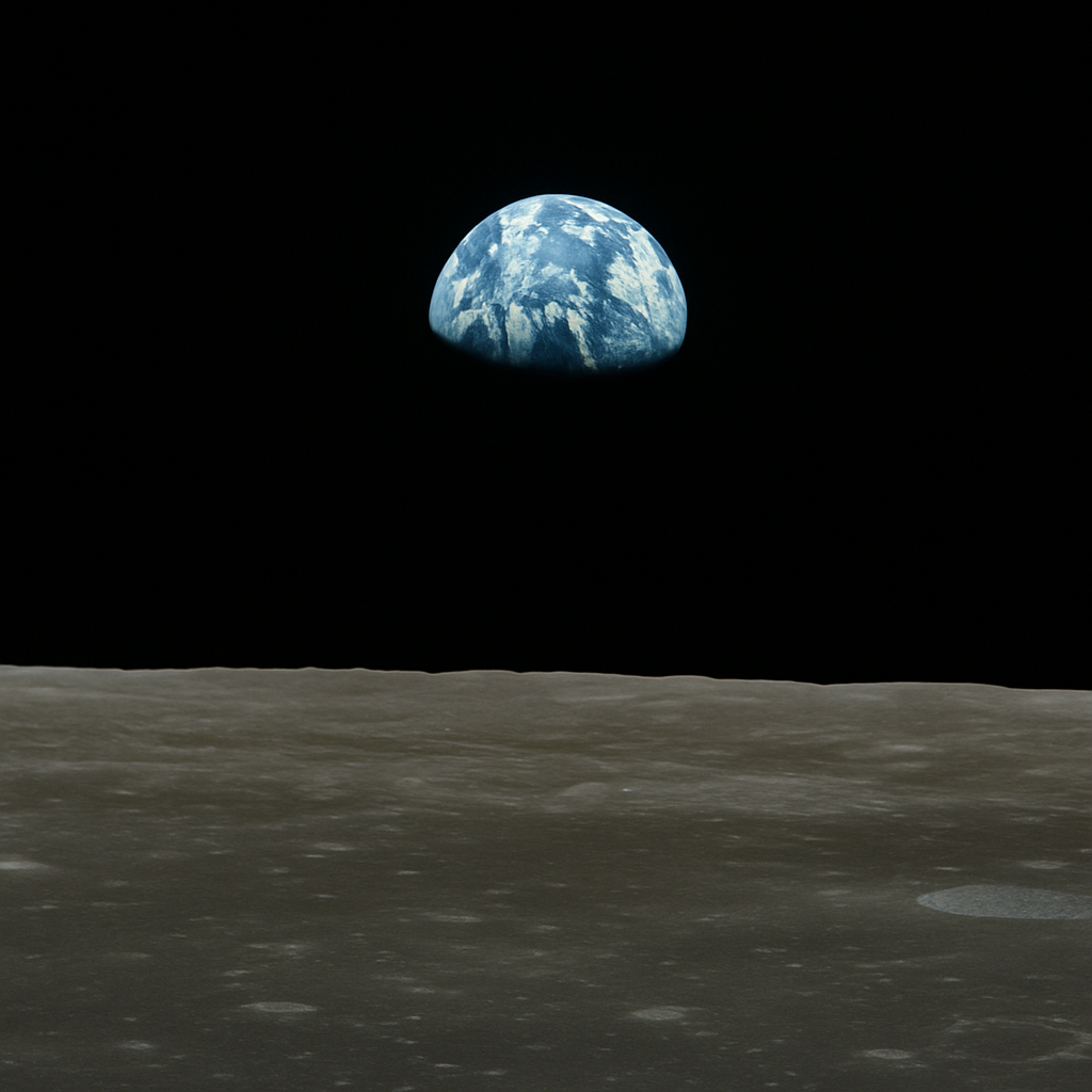 지구와의 거리 38만 킬로미터, 그 너머에서 찍힌 사진은 지구를 처음 '바깥'에서 바라본 이미지였다.