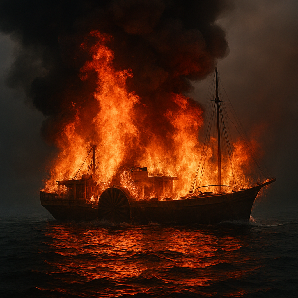 목조 선체는 불길에 휩싸이며 침몰했다.