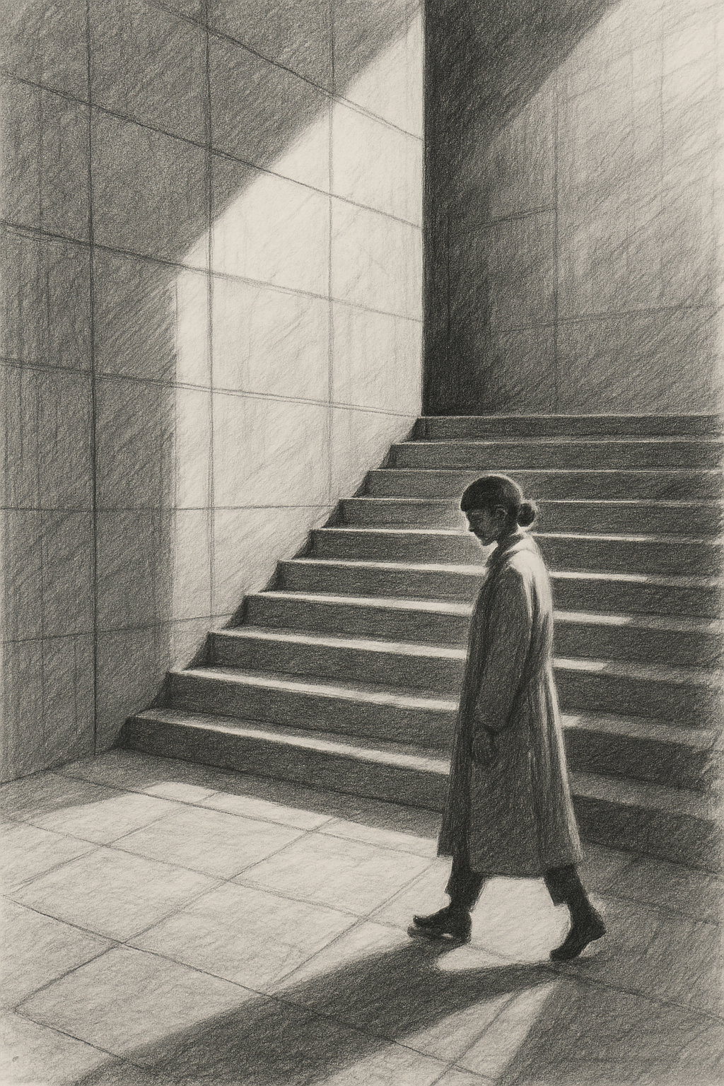 그런데 오늘은, 이상하게… 계단이 먼저 눈에 들어오네요.”