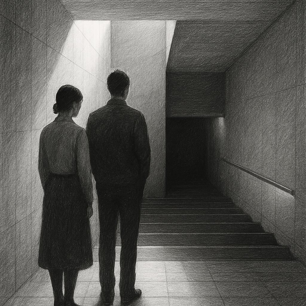 우리는 나란히 아래로 향하는 계단 앞에 섰다.