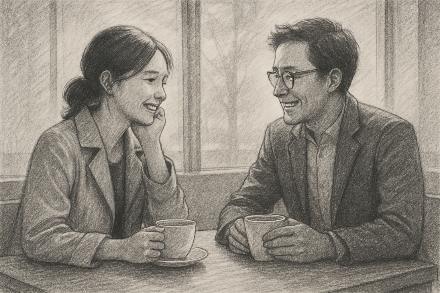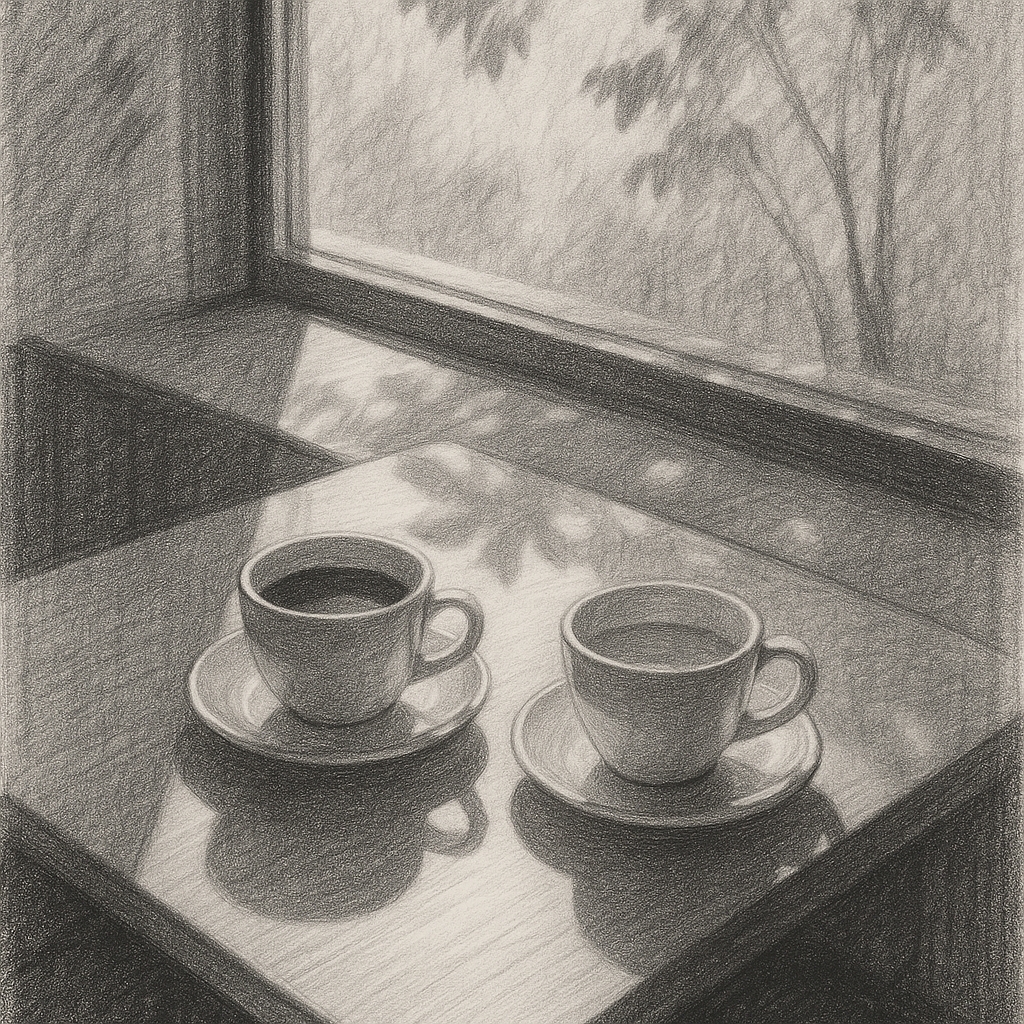 우리는 유리창 옆 자리, 빛이 반쯤 머무는 테이블에 마주 앉았다.