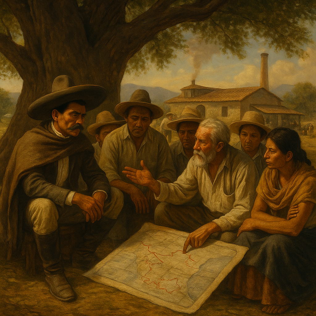 1879년 8월 8일, 에밀리아노 사파타는 멕시코 모렐로스 주 아네네쿠일코에서 태어났다. 그는 어릴 때부터 말을 잘 다루고 마을 공동토지인 에히도에서 농사짓는 법을 배웠다. 당시 멕시코는 포르피리오 디아스 독재 체제 아래 대지주의 아시엔다가 팽창했고, 경계 측량과 사유화 법제가 토착 공동체의 땅을 빼앗았다. 사파타는 이 불의가 생존을 위협하는 문제임을 깨닫고, 마을 대표로 나서 행정과 법을 상대로 토지 방어에 나섰다.