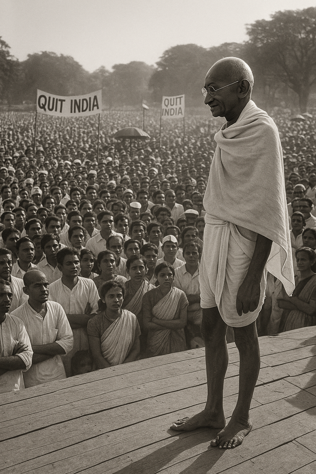 1942년 8월 9일, 인도 뭄바이(당시 봄베이)에서 마하트마 간디가 “Quit India(인도에서 떠나라)”라는 구호를 외쳤다. 제2차 세계대전이 한창이던 시기, 영국은 인도의 지원을 당연시했지만, 인도 국민은 그 대가로 독립을 요구했다. 간디의 연설은 단순한 정치적 요구가 아니라, 제국의 뿌리를 흔드는 강력한 선언이었다.
