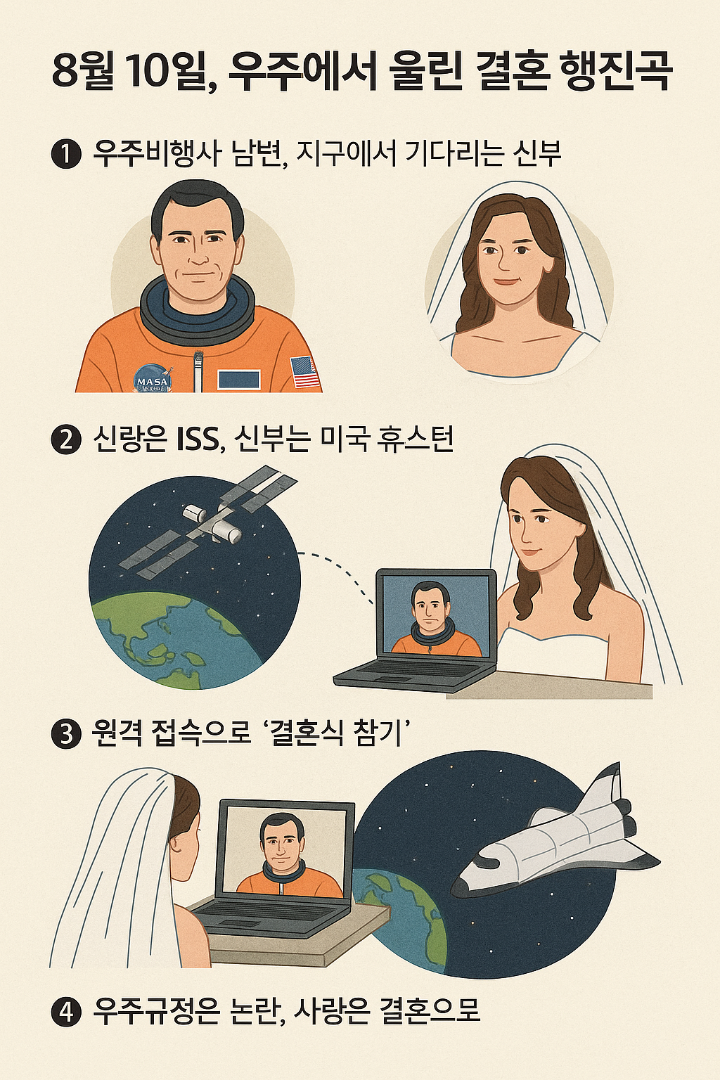 #8월10일 #우주에서의결혼 #유리말렌첸코 #국제우주정거장 #우주사랑이야기 #지구와우주의서약 #무중력결혼식 #러시아우주비행사 #휴스턴결혼식 #우주역사 #사랑의기록
