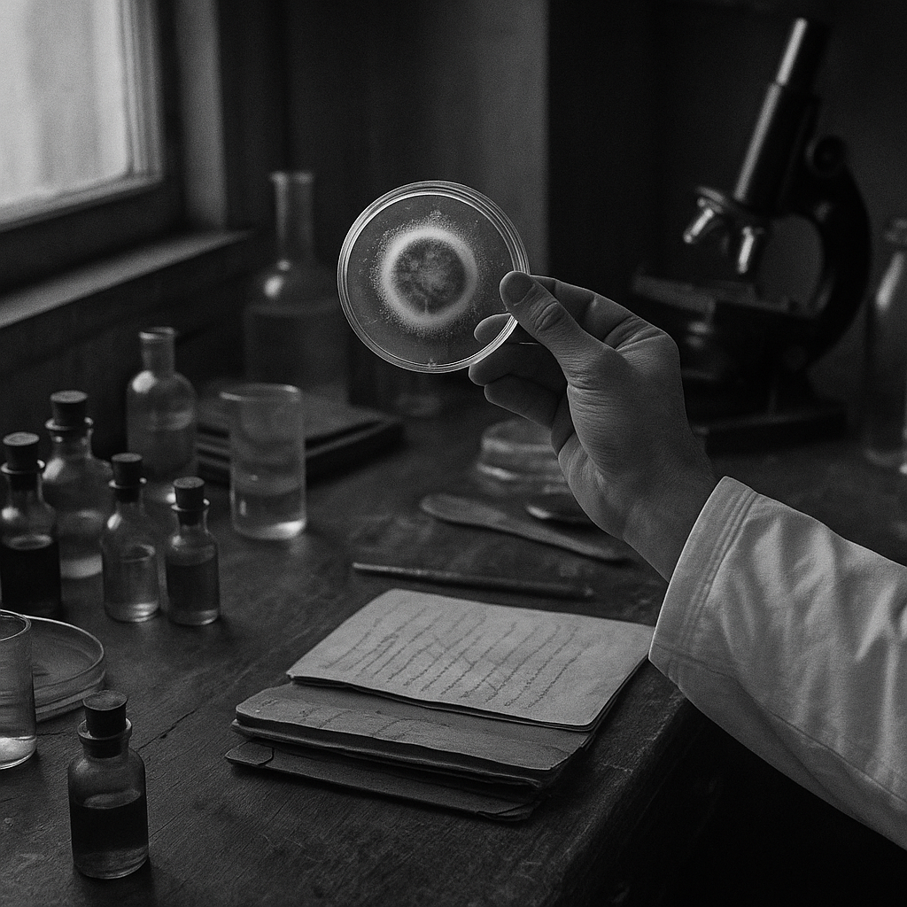 1928년 런던의 가을은 평범했다. 템스 강변을 따라 불어오는 습한 공기 속에서, 런던 세인트메리 병원의 작은 실험실 역시 여느 때처럼 분주했다. 그러나 그날, 연구실 한 구석에서 일어난 사소한 우연은 곧 인류의 운명을 바꾸게 된다. 미생물학자 알렉산더 플레밍은 배양 접시 위에 자란 황색포도상구균을 살펴보다가, 뜻밖의 광경을 발견한다. 세균이 자라야 할 영역 한쪽이 깨끗하게 비어 있었고, 그 경계를 따라 푸른빛 곰팡이가 퍼져 있었다. 흔히 버려지는 오염 표본이었지만, 그는 거기서 멈추지 않았다. 곰팡이가 세균의 성장을 막고 있다는 사실을 플레밍은 직감했고, 이 직관이 인류 최초의 항생제인 페니실린의 탄생으로 이어졌다.