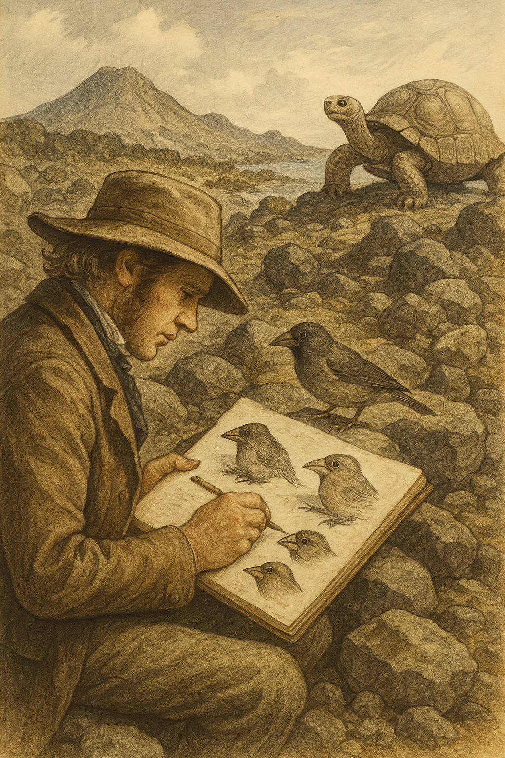 그는 노트에 스케치를 하고, 작은 새들을 분류하며 머릿속으로 수많은 가설을 세웠다. 단순히 신이 각각을 따로 창조한 것이 아니라, 환경에 따라 변화한 것은 아닐까. 감히 말할 수 없던 의문이 그의 가슴 속에서 자라고 있었다. 그 질문은 나중에 《종의 기원》으로 이어지며 세상의 눈을 바꾸게 된다.