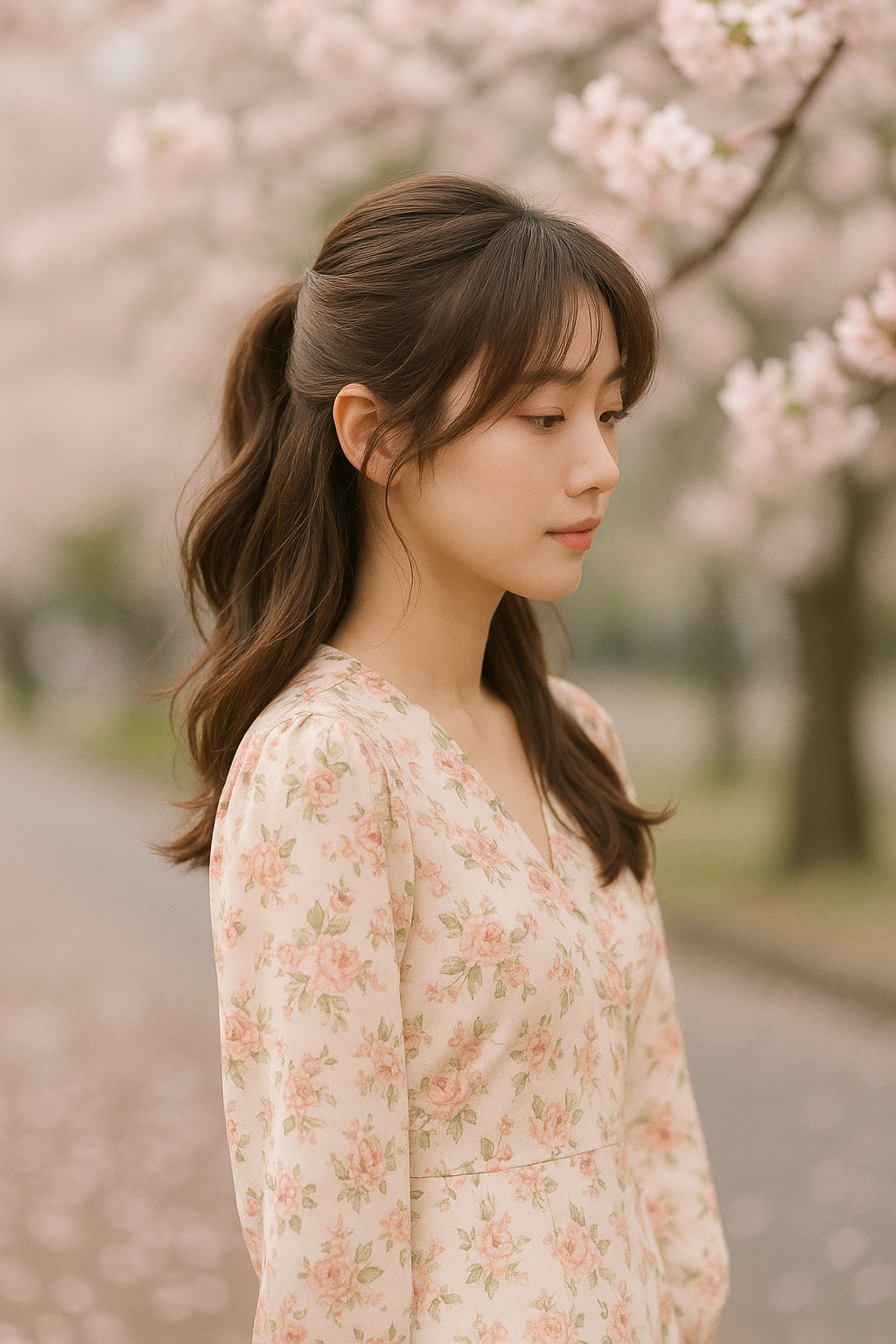 ⑤ 로우 포니테일 + 소프트 브라운 톤