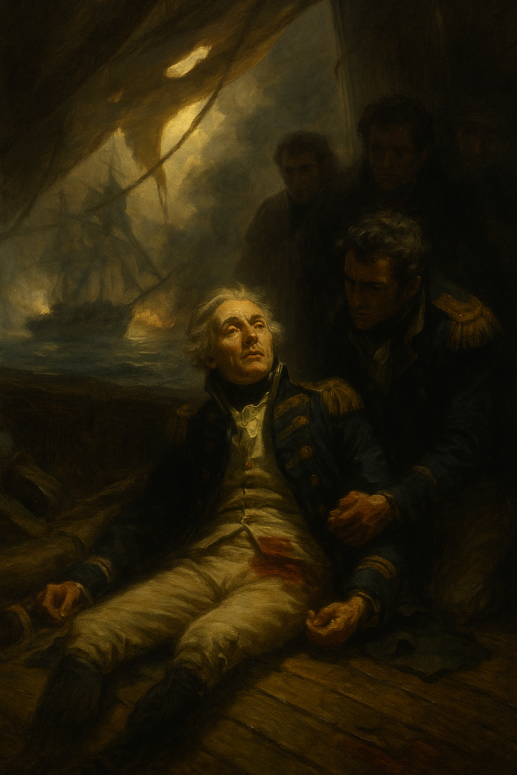 호레이쇼 넬슨 제독은 선두함 Victory의 갑판 위에서