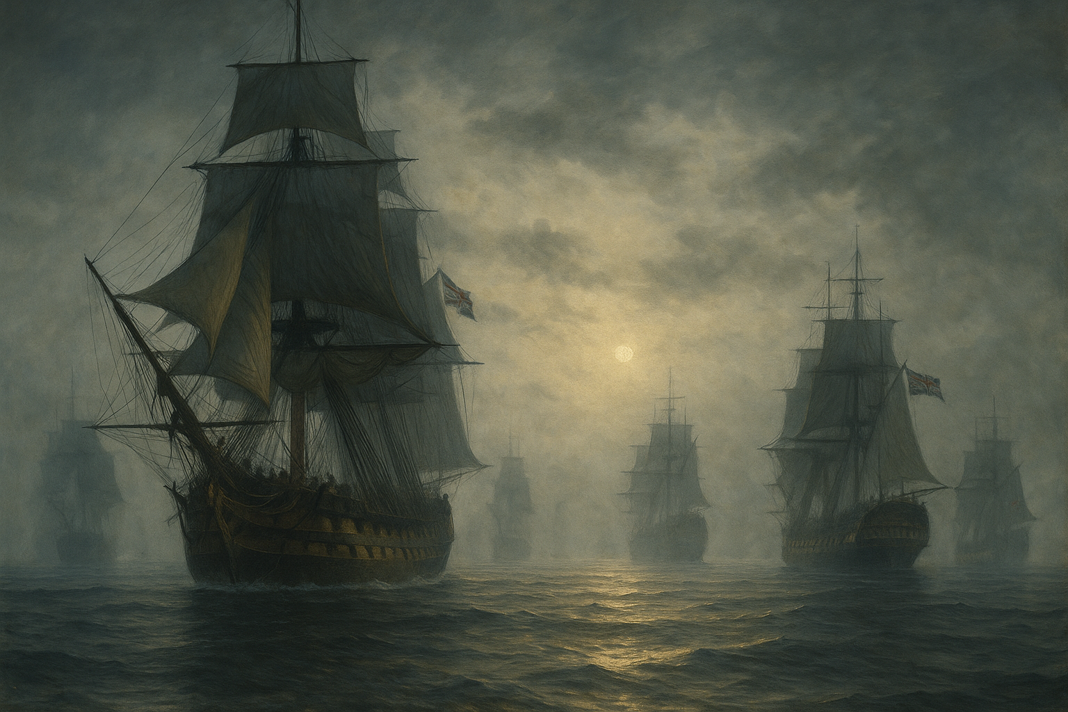 영국 해군의 함선들이 짙은 안개 속에서 조용히 방향을 틀고 있었다.