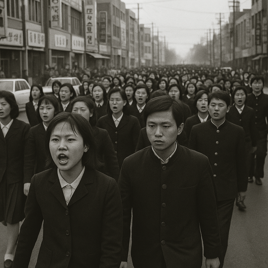수천 명의 학생들이 교문을 뛰쳐나와