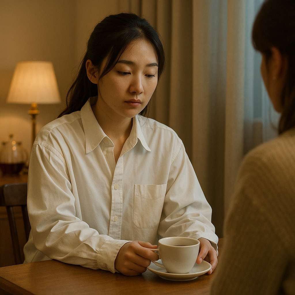 찻잔을 건네며 그녀가 말했다.