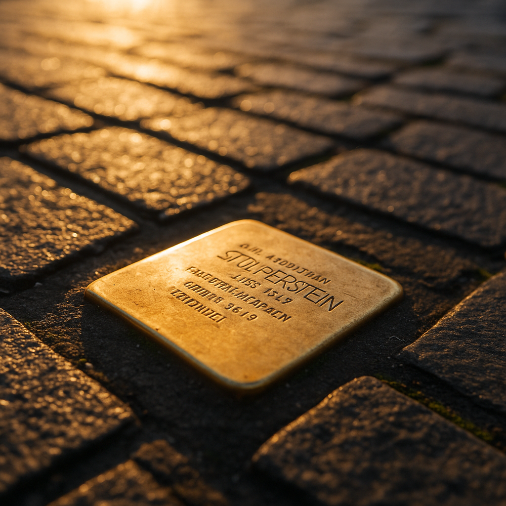 회색 벽돌 사이, **‘슈톨퍼슈타인(Stolperstein)’**이라 불리는