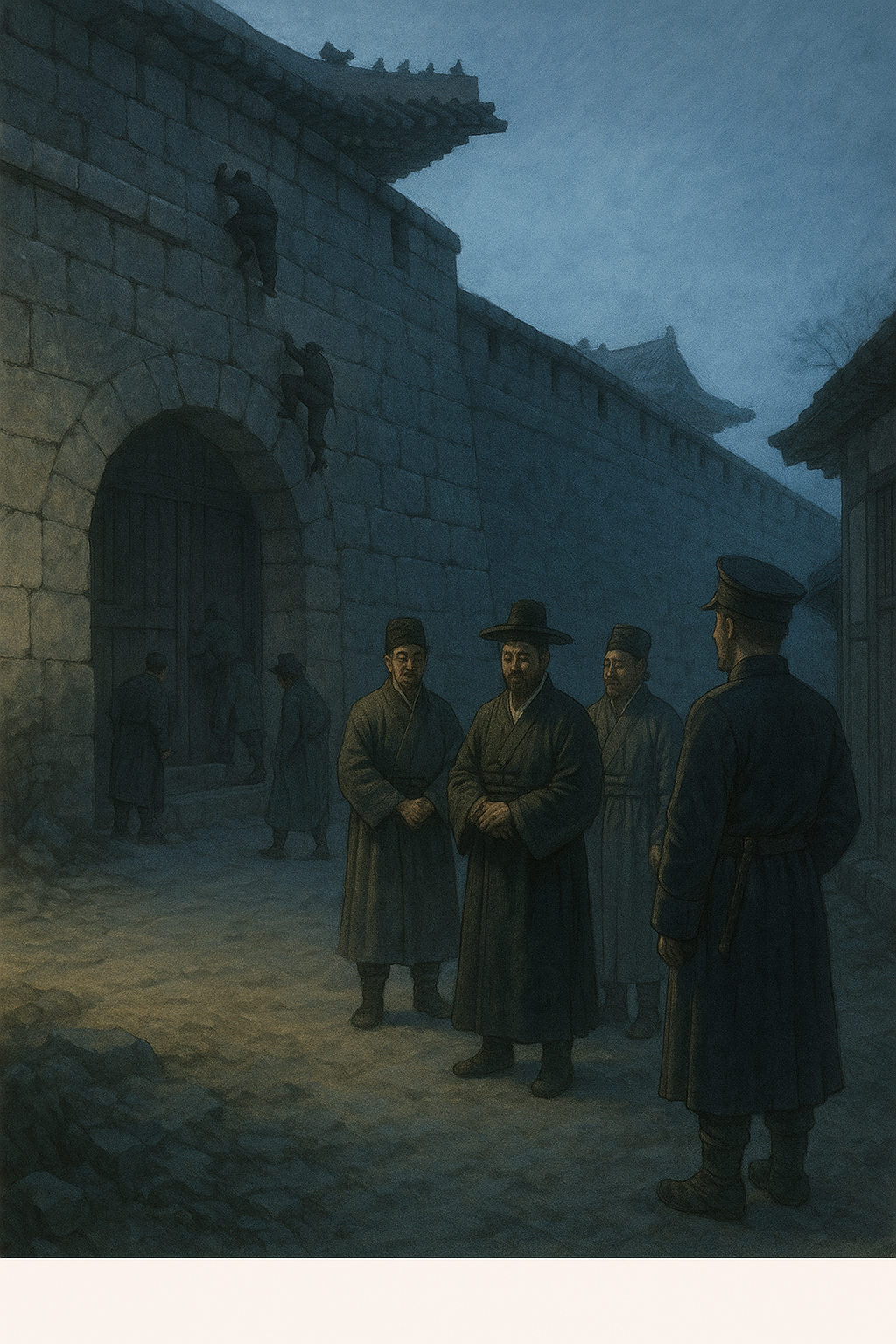1895년 11월 28일 새벽, 담을 넘다 붙잡힌 열 명의 군인과 관리들의 모습은, 그래서 아직 끝난 사진이 아니다. 그들은 실패했고, 역사는 다른 길로 흘러갔다. 그러나 그 실패 속에는, 외세와 권력 사이에서 주권을 지키려던 작은 나라의 마지막 몸부림이 담겨 있다. 오늘날의 우리는, 11월 28일을 그런 날로 기억할 수 있을 것이다.