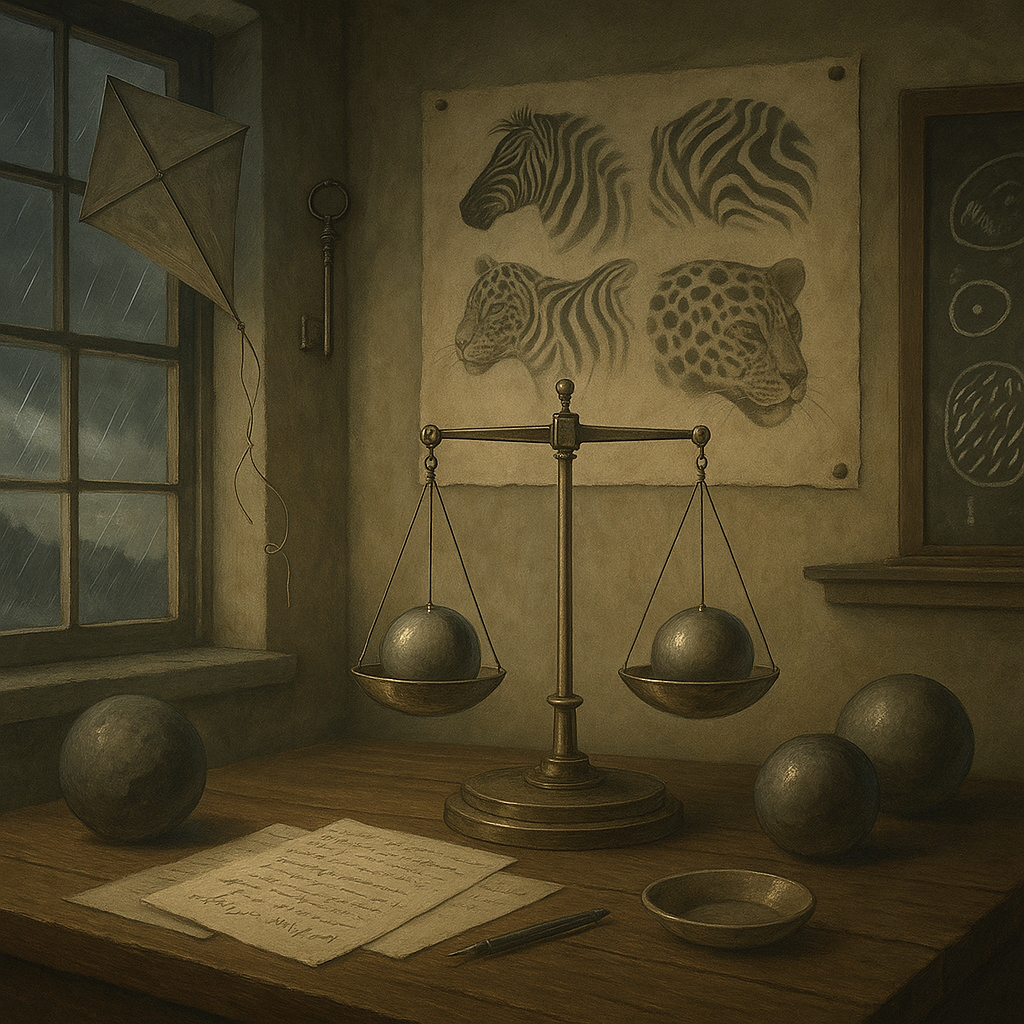 시간이 조금 더 흐르면, 이 저널에 실리는 실험의 스케일은 더 넓어진다. 벤저민 프랭클린은 번개가 전기와 같은 현상임을 보여 줘야 한다고 생각했고, 비 오는 날 연과 금속 열쇠를 이용해 전기를 끌어오는 위험한 실험을 수행한다. 이 실험을 바탕으로 작성된 **「전기 연에 관하여(A Letter… concerning an Electrical Kite)」**는 Philosophical Transactions에 실려, 번개와 전기의 동일성을 입증한 상징적 문서가 된다. 한편 헨리 캐번디시는 거대한 납 덩어리와 섬세한 비틀림 저울을 이용해 지구가 끌어당기는 힘을 측정하고, 이를 바탕으로 지구의 평균 밀도를 계산해 논문으로 보고한다. 거대한 행성 전체를, 런던의 한 건물 방 안에 설치한 장치로 ‘무게를 재어 본’ 실험이었다.