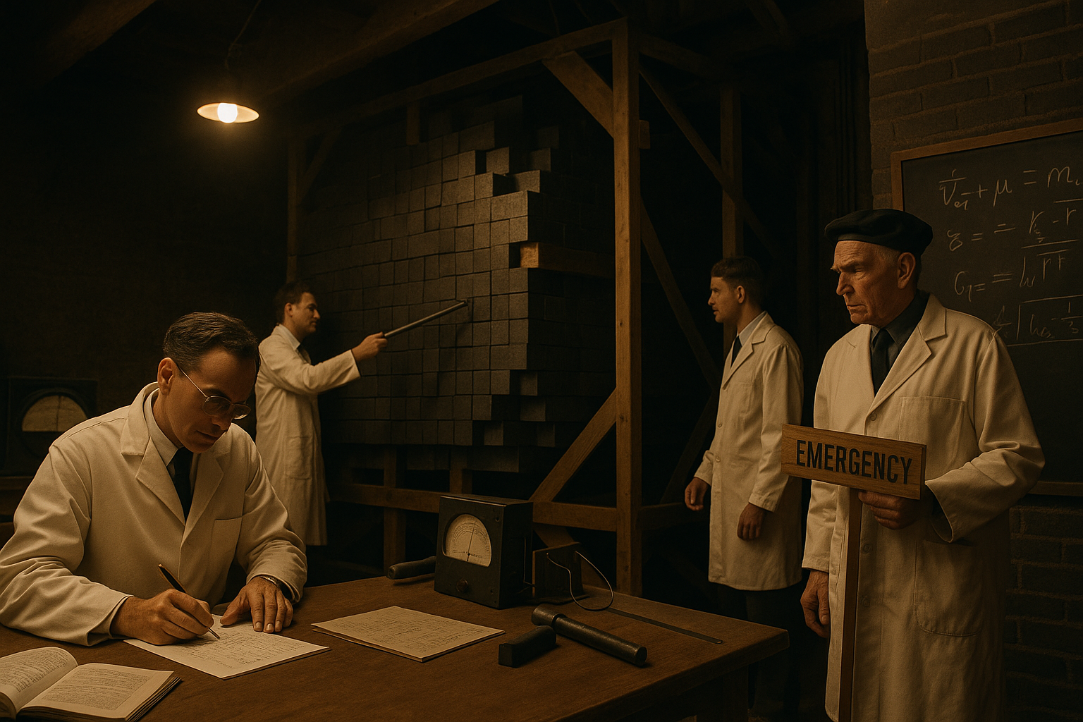 하지만 실제 핵 시대의 첫 장면은, 사막이 아니라 시카고의 어두운 지하 체육관이었다. 우라늄을 둘러싼 흑연 블록, 나무로 임시 제작한 제어 장치, 안전요원들이 손으로 잡고 있던 “비상용 흡수봉”까지, 모든 것이 임시적이고 불안해 보이는 공간. 폭발도, 섬광도, 웅장한 음악도 없다. 대신 어색한 침묵, 계산기와 슬라이드 룰, 종이에 연필로 쓰인 숫자들과 그래프뿐이다.