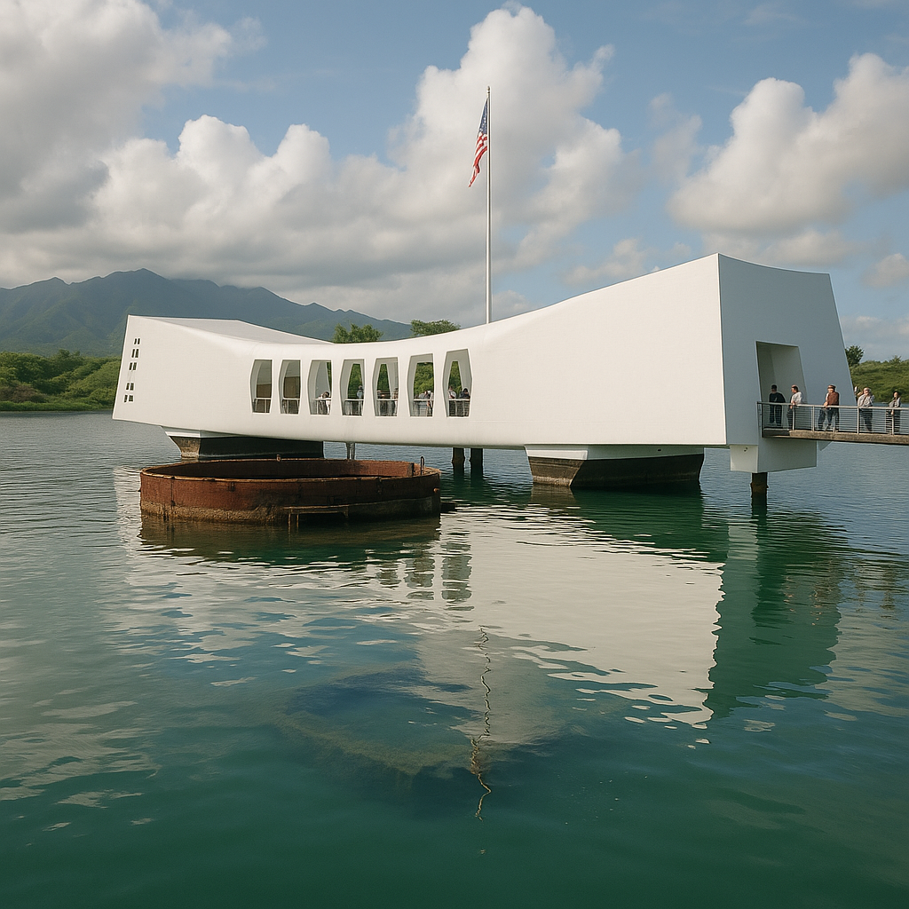 오늘의 진주만에는 애리조나 기념관이 조용히 떠 있다.