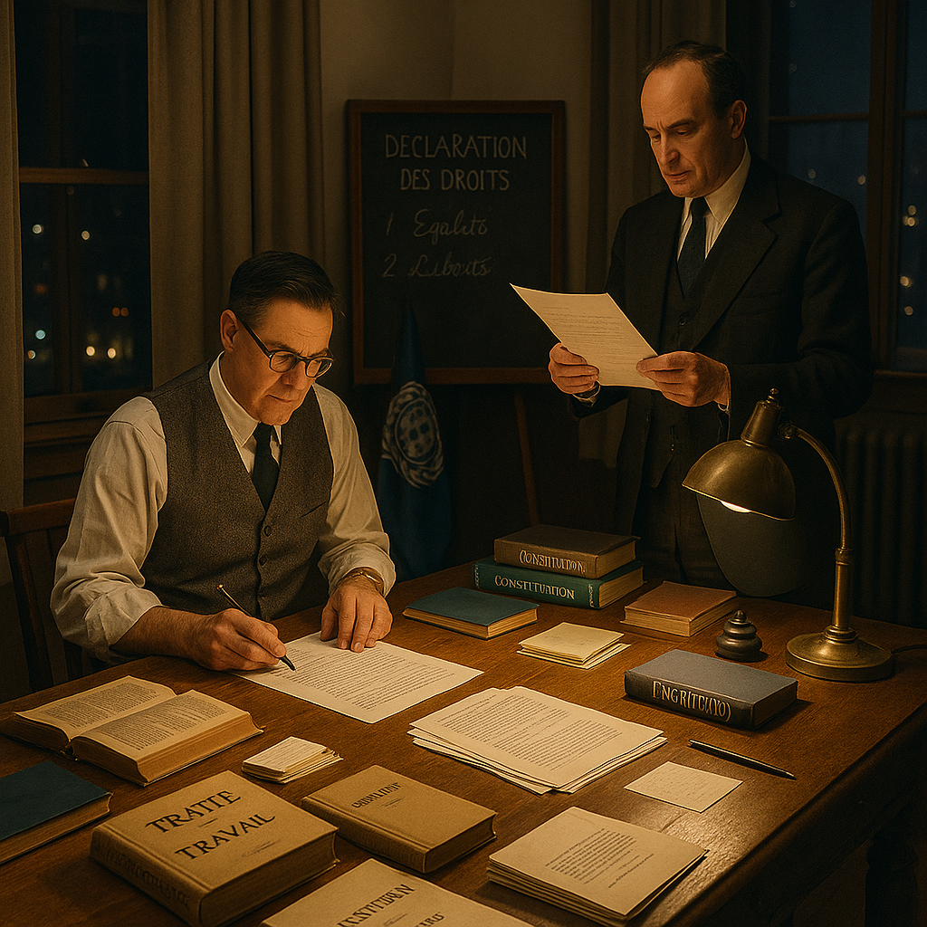 그 작업은 외교 문서를 작성하는 일이면서 동시에, 전쟁 이후 인류가 스스로를 어떤 존재로 다시 정의할 것인지 묻는 철학적 실험이기도 했다.