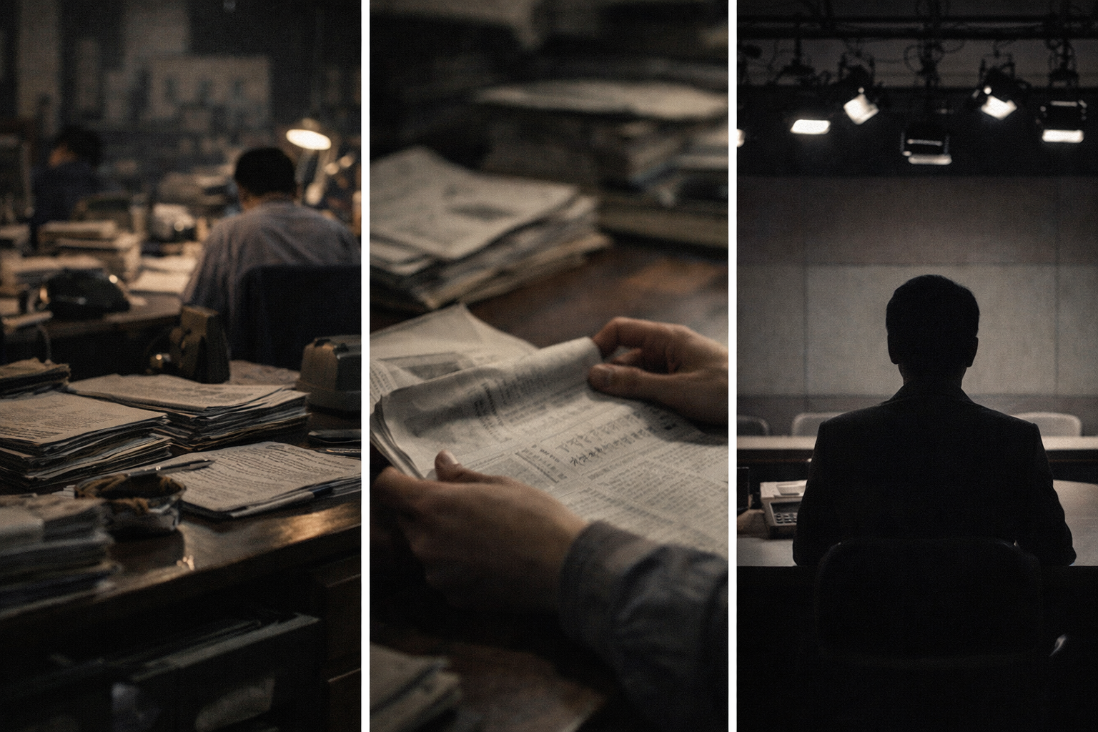계엄기 언론의 가장 큰 특징은 ‘침묵’이 아니라 ‘계속 말함’이었다. 신문은 정상적으로 발행되었고, 방송 뉴스는 정해진 시간에 흘러나왔다. 그러나 기사에서 질문은 사라지고 인용이 늘어났다. “밝혔다”, “전해졌다”, “알려졌다” 같은 수동적 동사가 지면을 채웠다. 이는 검열의 결과이기도 했지만, 동시에 언론 내부의 자기 검열이 만든 결과였다. 기자들은 무엇을 쓰면 안 되는지보다, 어떤 어조가 안전한지를 먼저 학습했다. 이 시기 언론은 사실을 삭제하기보다 사고를 평탄화했다. 사건은 있었지만, 맥락은 사라졌다. 독자는 정보를 받았으나, 해석할 실마리는 얻지 못했다. 이로써 언론은 사회를 흥분시키지 않는 대신, 사회가 스스로 조용해지도록 도왔다. 침묵은 공백이 아니라, 훈련의 결과였다.