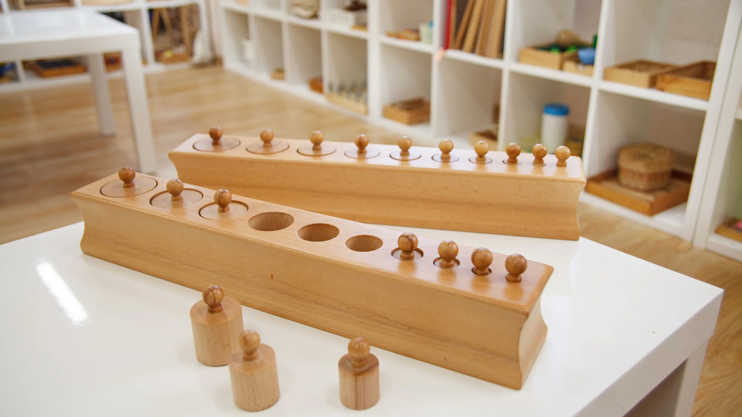 몬테소리 교구들 역시 철저히 과학적으로 설계되었다. 그녀가 고안한 교구들은 아이가 사용하다가 실수를 하면 스스로 알아차릴 수 있도록 만들어졌다(오류의 정정). 예를 들어, 크기가 다른 원기둥을 구멍에 끼우는 교구는 잘못 끼우면 마지막에 하나가 남거나 맞지 않게 된다. 이때 아이는 선생님에게 "틀렸어요?"라고 묻지 않고, 스스로 잘못을 수정하며 문제를 해결한다. 이 과정에서 아이는 성취감과 독립심을 느낀다. 몬테소리는 칭찬이나 사탕 같은 외적 보상을 거부했다. 배움 그 자체가 주는 기쁨, 스스로 해냈다는 성취감이야말로 아이를 성장시키는 가장 강력한 동력이라고 믿었기 때문이다.