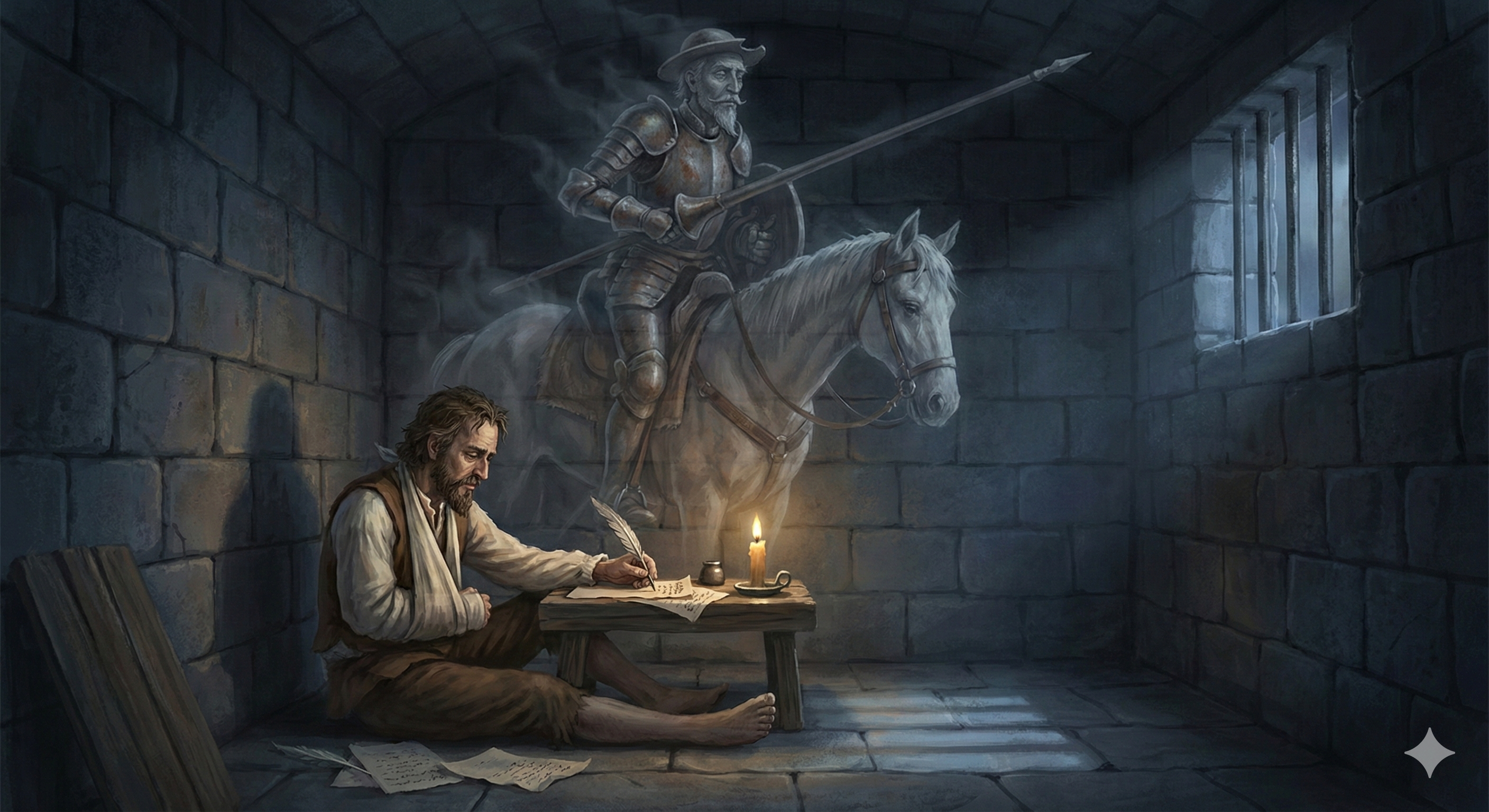 1605년 1월 16일, 스페인의 마드리드에서 한 권의 책이 세상에 나왔을 때, 사람들은 그저 배를 잡고 웃었다. 레판토 해전에서 한쪽 팔을 잃고, 해적에게 납치되어 5년간 노예로 살았으며, 고국에 돌아와서는 억울한 누명을 쓰고 세비야의 감옥에 갇혔던 작가 미겔 데 세르반테스. 그는 자신의 인생이 가장 낮게 가라앉은 그 차갑고 습한 감옥 안에서, 세상 밖으로 질주하는 기사 ‘돈 키호테’를 구상해냈다.